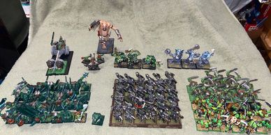 Collected during Covid lockdown, here is a complete 3rd edition Wood Elves army. Still need to slap paint on a few, but this army is nearly ready for the table top. It'll be great to have them face off against my Chaos army!
